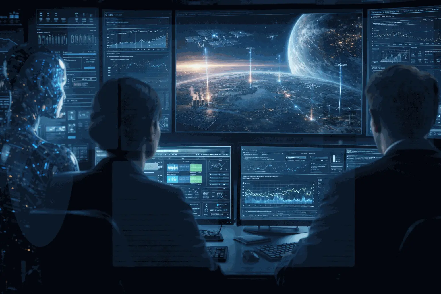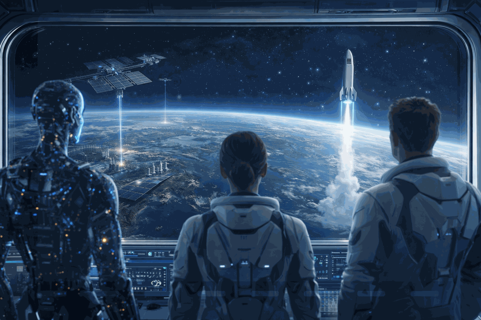 Zukunftsbild Mensch + KI Dieses Bild steht für eine Zukunft, in der Mensch und KI nicht gegeneinander, sondern gemeinsam handeln. Saubere Systeme, moderne Infrastruktur und koordinierte Energieflüsse schaffen die Grundlage für Fortschritt, Stabilität und den nächsten großen Schritt: den geordneten Aufbruch in den erweiterten Raum zwischen Erde und Orbit. Es ist das Bild einer Zivilisation, die Technik sinnvoll führt, statt ihr nur hinterherzulaufen.